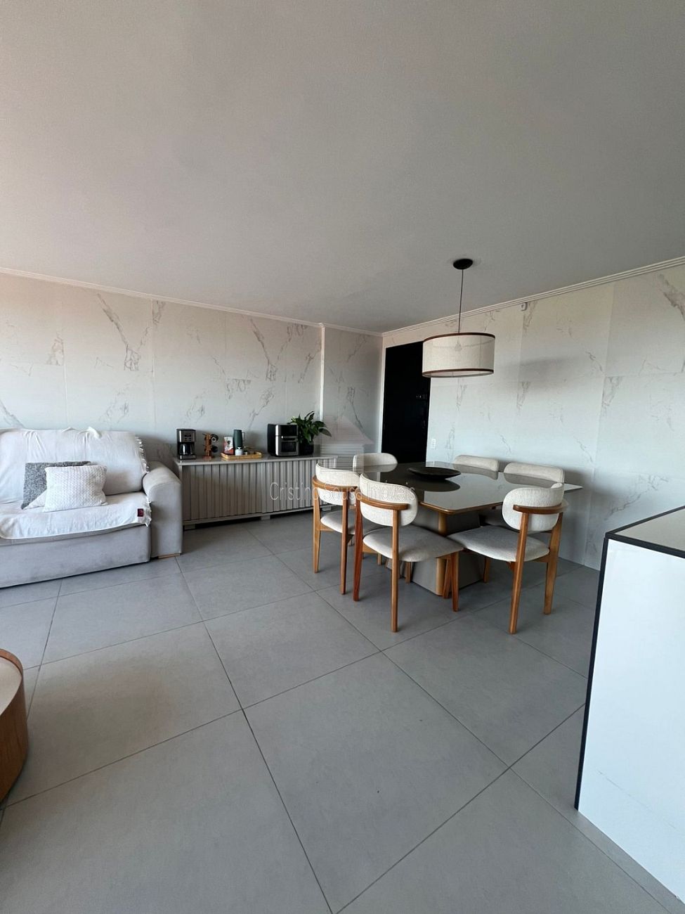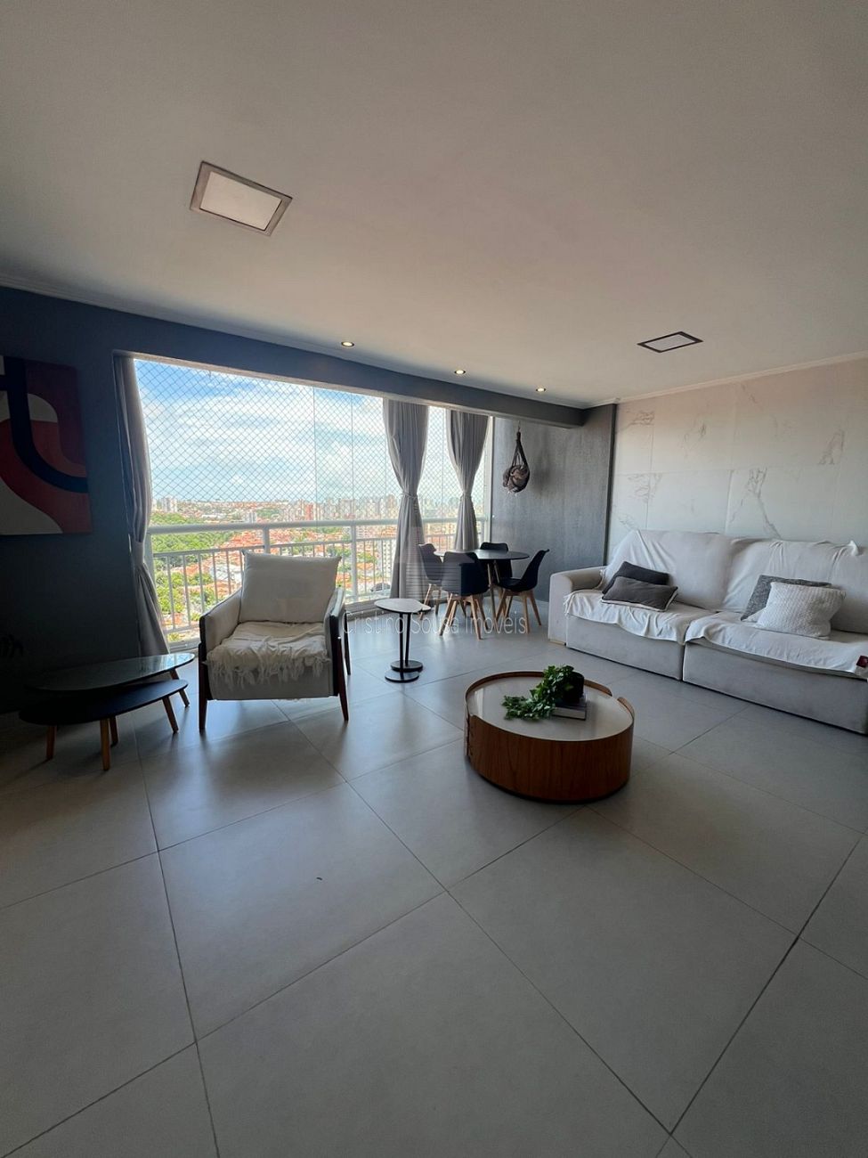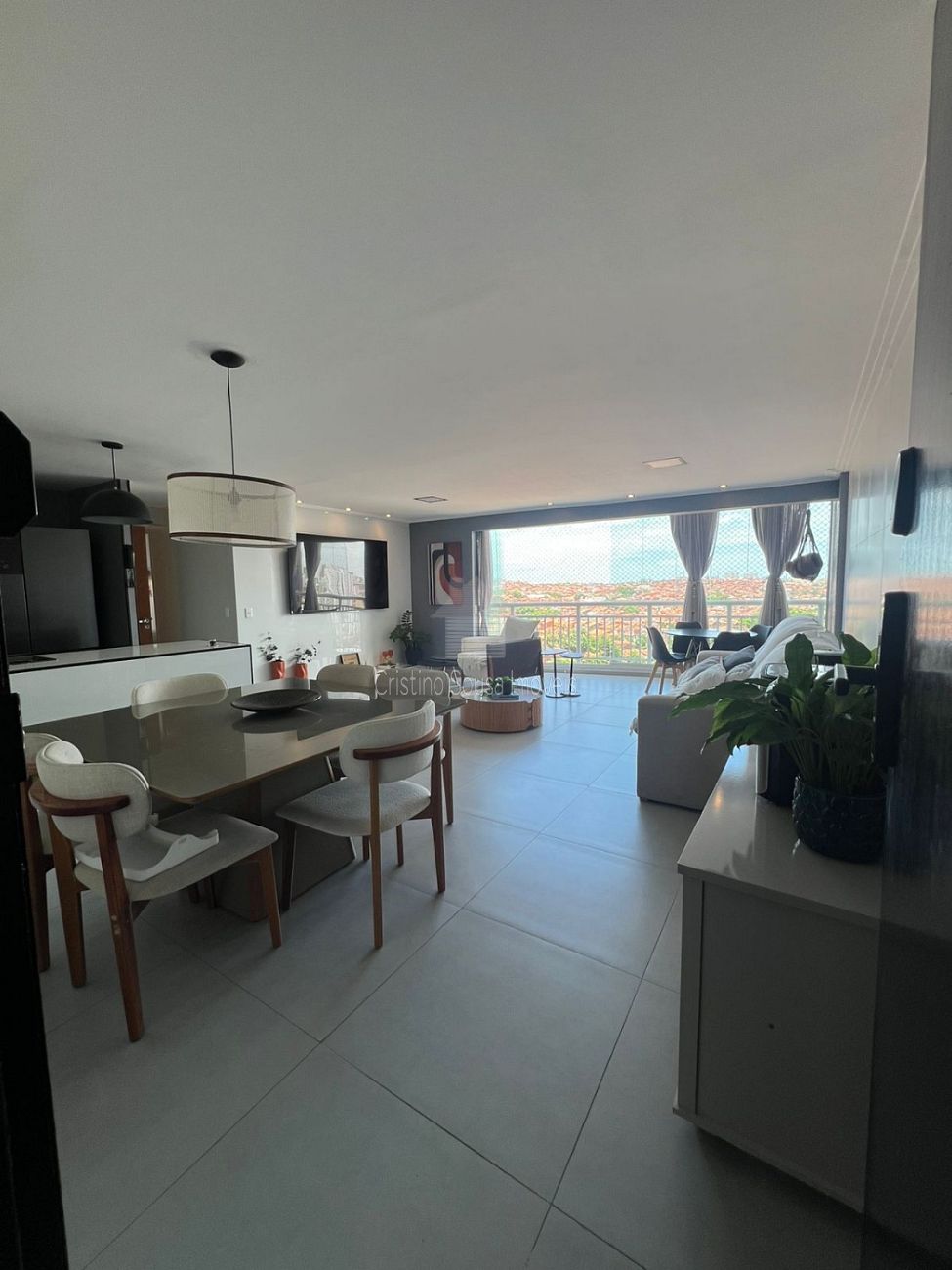 Sala ampla integrada á varanda (cortina de vidro)