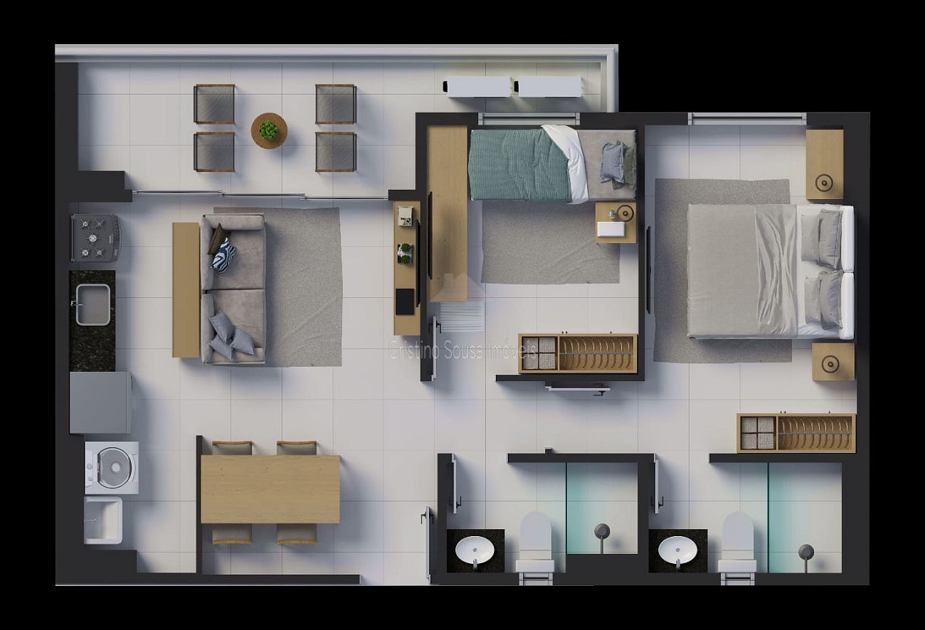 2 dormitórios (1 suíte)